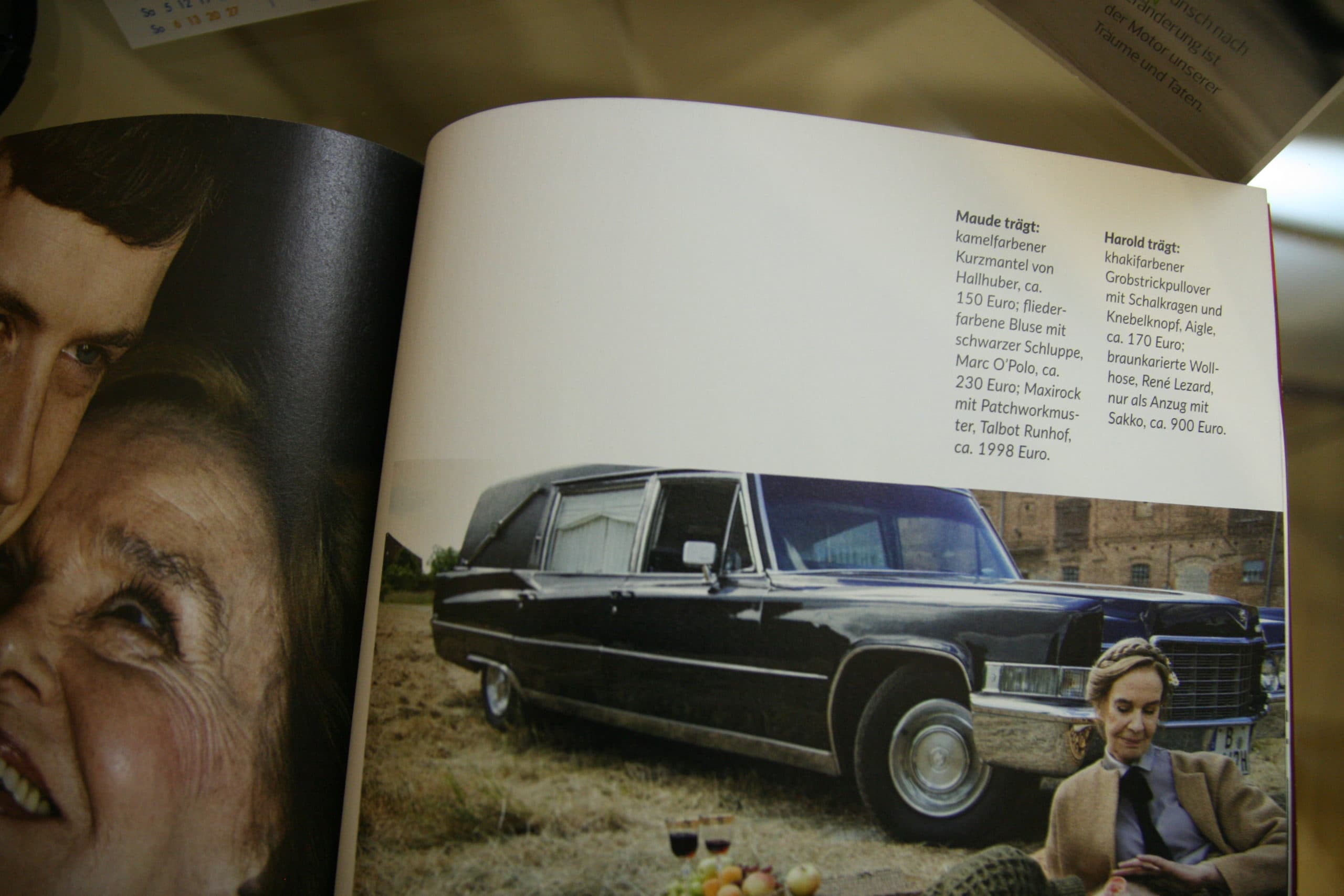 Hinaus begleitet wird die Leserin in „Brigitte Wir“ von „Harold & Maude“ – eine an den Filmklassiker anmutende Fotostrecke, die vor allem Mode verkaufen will: einen Kaninchenfellmantel für 1077 Euro, einen Kaschmir-Pullover für 499 Euro und einen Maxirock mit Patchworkmuster für 1998 Euro. Die beiden Protagonisten: ein junger Mann und eine alte Frau.